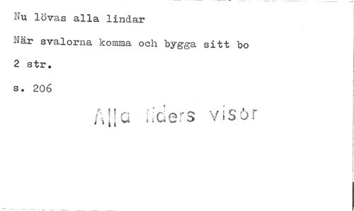 //// Nu lövas alla lindar //// När svalorna komma och bygga sitt bo 2 str. //// s. 206 //// visör ////