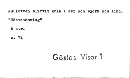 //// NuilöfVen blitrit gula I asp och björk och lind, "Höststämning" //// 6 str. //// se 72 //// Göstc:-, V:sor 1 ////
