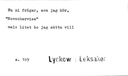 //// Nu ni frågar, som jag hör, "Novembervisa" //// mel: Litet bo jag sätta vill //// s. 189 kyckow : Leksaker ////
