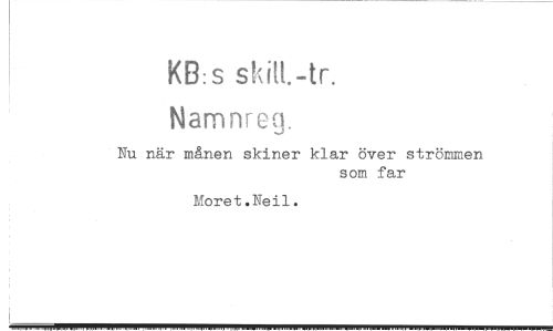 //// KB:s //// Namnrcg. //// Nu när månen skiner klar över strömmen //// som far //// Moret.Neil. ////