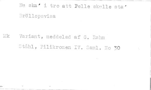 //// Nu ska' i tro att Pelle skalle sta' Iröllopsvisa //// Mk Variant, meddelad af G. Rahm Ståhl, Filikromen IV. Saml. No 30 ////
