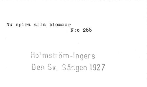 //// Nu spira alla blommor //// N:o 266 //// Ho'rnströrn-Ingers //// Oen Sv. Sången 1927 ////