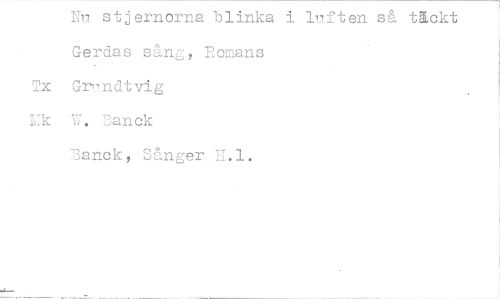 //// Nu stjernorna blinka i luften så täckt Gerdas sång, Romans //// Tx Grundtvig //// W. Banck //// Banck, Sånger T.-1.1. ////