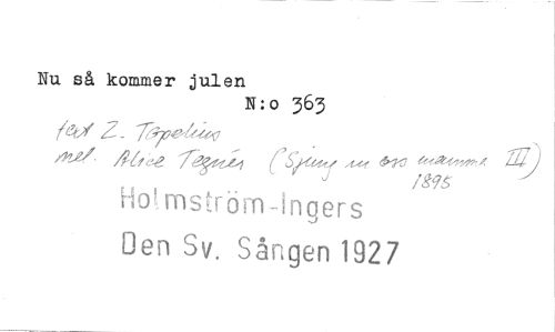 //// Nu så kommer julen //// N:o 363 //// /et/ Z_ 7»,791(-e«. "il Ml e2 7-ery- //// i-i&rnströrn-ingers //// Den Sv. Sår,gen 1927 //// efal<7 ////