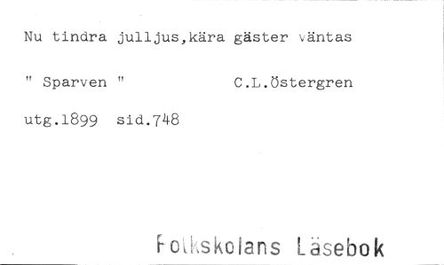 //// Nu tindra julljus,kära gäster väntas //// " Sparven " C.L.östergren //// utg.1899 sid.748 //// F--0',Lskolans Läsebok ////
