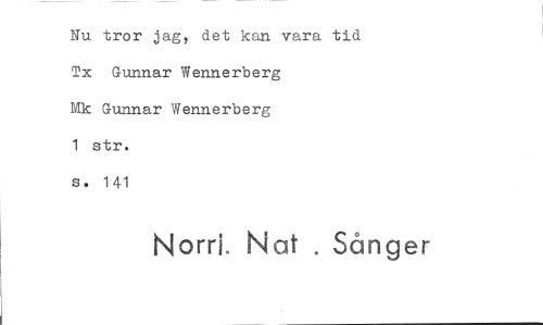 //// Nu tror jag, det kan vara tid Tx Gunnar Wennerberg //// Mk Gunnar Wennerberg 1 str. //// s. 141 //// Nord. Na . Sånger ////