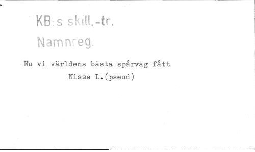 //// KB-s skitl.-tr. //// Namweg. //// Nu vi världens bästa spårväg fått Nisse L.(pseud) ////
