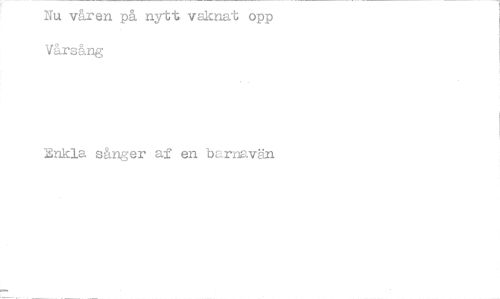 //// Nu våren på nytt vaknat opp Vårsång //// Enkla sånger af en barnavän ////