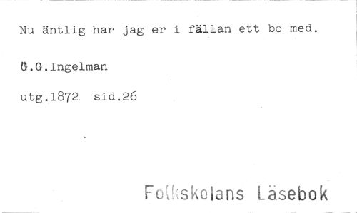 //// Nu äntlig har jag er i fällan ett bo med. //// C.G.Ingelman utg.1872 sid.26 //// F skolans Lasebok ////