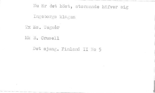 //// Nu är det höst, stormande häfver sig Ingeborgs klagan //// Tx Es. Tegnår Ek B. Crusell //// Det sjung. Finland II No 5 ////