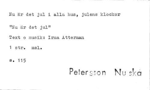 //// Nu är det jul i alla husy julens klockor //// "Nu är det jul" //// Text o musik: Irma Atterman 1 str, //// Peter n ////