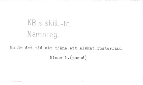 //// KB: s //// Namnreg. //// Nu är det tid att tjäna ett älskat fosterland Nisse L.(pseud) ////