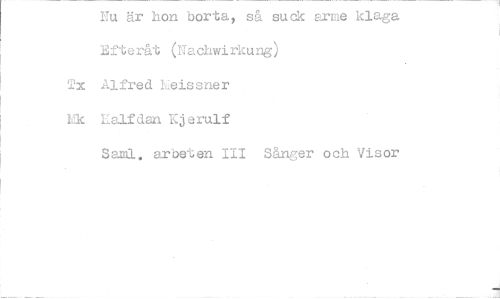 //// Nu är hon borta, så suck arme klaga Efteråt (N cl irkung) //// Tx Alfred Leissner //// Ek Eslfdan Kjerulf //// Sand.. arbeten III Sånger och Visor ////