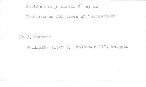 //// Nutidens unge karlar äl ej af //// Karib' e i för tiden ur ' ömnerskan" //// Nk C. Conradi //// 3allLark, Visor o. Kuple er knippan ////