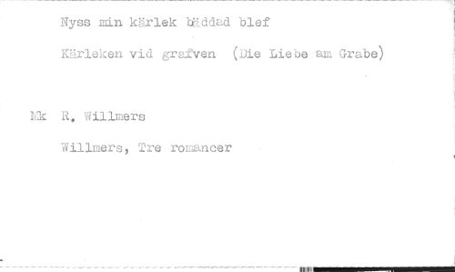 //// Nyss nain kärlek bäddad blef //// Kärleken vid grafven (Lie Liebe am Grabe) //// Ek R. Willmers //// Willmers, Tre romancer //// ERIM111~11111~11111~111•11^1 ////