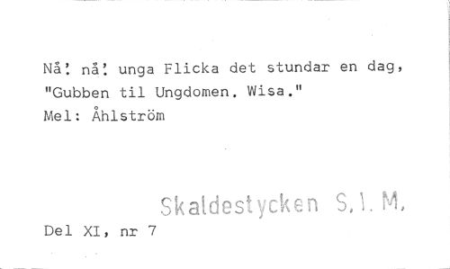 //// Nå: nå unga Flicka det stundar en dag, "Gubben til Ungdomen. Wisa." //// Mel: Åhlström //// Skatdest ck n SA. M, //// Del XI, nr 7 ////