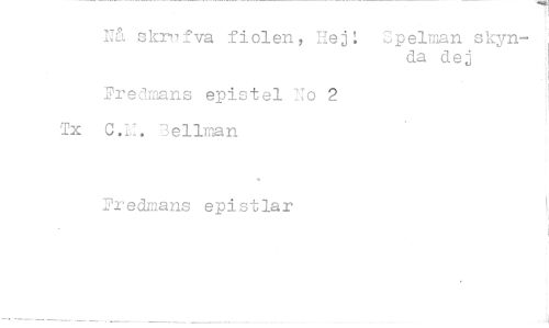 //// Nå skr7fvu fiolen, Hej: Spelman skyn- //// da dej //// Fredmans epistel To 2 Tx 0.1". 3ellman //// Fredmans epistlar ////