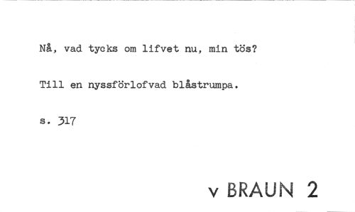 //// Nå, vad tycks om lifvet nu, min tös? Till en nyssförlofvad blåstrumpa. //// s. 317 //// v BRAUN 2 ////