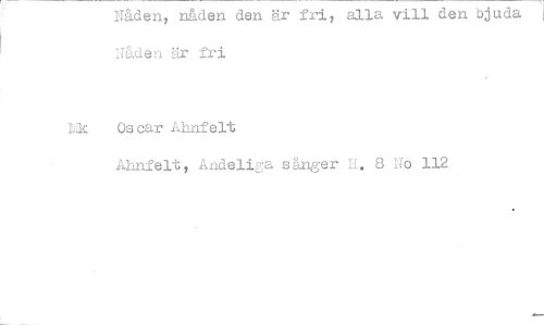 //// Nåden, nåden den dr fri, alla vill den bjuda Nåden är fri //// Dik Oscar Ahnfelt //// Ahnfelt, Andeliga sånger H. 8 No 112 ////