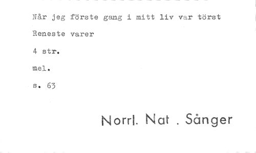 //// Når jeg förste gang i mitt liv var törst Reneste varer //// 4 str. //// inel. //// s. 63 //// Nord. Nat . Sånger ////