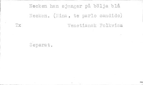 //// Necken han sjunger på bölja blå Necken. (Nina, te parlo candido) Tx Venetiansk Folkvisa //// Separat. ////