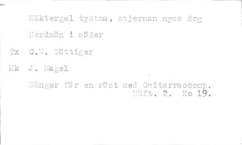 //// Näktergal tystna, stjernan nyss dog Nordmön i söder //// Tx C.W. Röttiger //// Mk J. Nagel //// Sånger för en röst med Glidtärraoöomp. //// raft. 2. No 19. ////