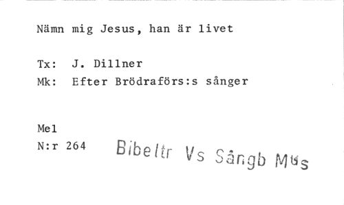 //// Nämn mig Jesus, han är livet //// Tx: J. Dillner //// Mk: Efter Brödraförs:s sånger //// Mel //// N:r 264 Bibeltr Vs Sångb Mbs ////