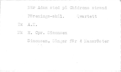 //// När Adam stod på Chidrons strand //// Pörenings-skål. Qvartett //// Tx A.K. //// k H. Cpr. Simonsen //// Simonsen, Sånger för 4 '41sräster ////