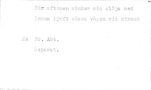 //// När aftonen sänker sin slöja ned Somna ljt'ft såsom vågen vid strand //// 1k Fr. Abt. Separat, ////