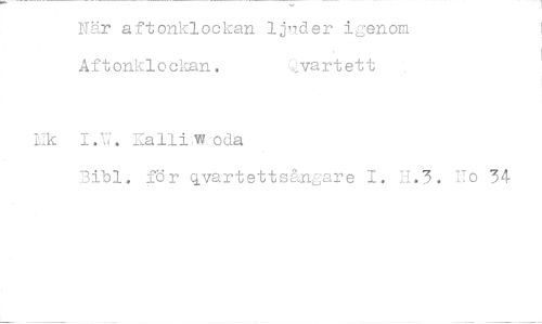 //// När aftonklockan ljuder igenom Aftonklockan. svartett //// Lie I.W. Ialliwoda //// Bibi. för qvartettsångare I. H.3. 70 34 ////