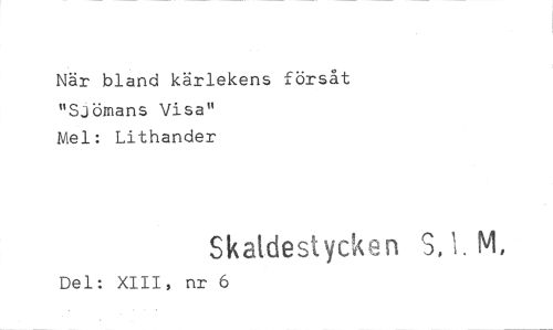 //// När bland kärlekens försåt "Sjömans Visa" //// Mel: Lithander //// Skatdestycken S,1. M, //// Del: XIII, nr 6 ////
