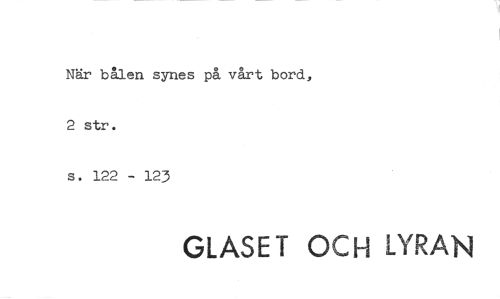 //// När bålen synes på vårt bord, 2 str. //// s. 122 - 123 //// GLASET OCH LYRAN ////