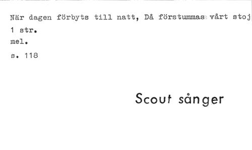 //// När dagen förbyts till natt, Då förstummasvårt stoj! //// 1 str, mel. //// s. 118 //// Scout sånger ////