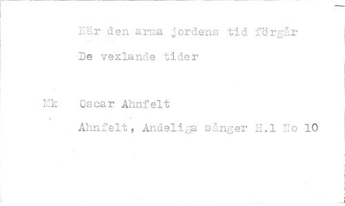 //// Kär den arma jordens tid förgår De vexlande tider //// Mk Oscar Ahnfelt //// Ahnfelt, Andeliga sånger H.1 Uo 10 ////