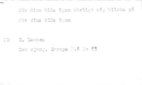//// nr dina blåa ögon k5rligt mig blicka på rti,r dina blåa öj:on //// rk E. Lassen //// Det sjung. Europa 1.1.6 ro 63 ////
