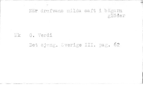 //// När drufvan.s milda saft i bägarn //// glöder //// Mk G. Verdi //// Det sjnng. Sverige III. pag. 62 ////