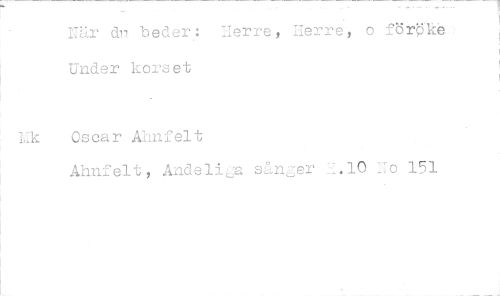 //// När dn beder: Herre, Herre, o förke Under korset //// Hk Oscar Alinfelt //// Ahnfelt, Andeliga sånger H.10 ro 151 ////
