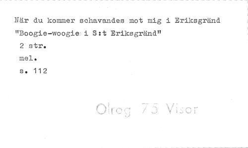 //// När du kommer sohavandes mot mig i Eriksgränd nBoogie—woogiei S:t Eriksgränd" //// 2 str. //// nie 1. //// s. 112 ////