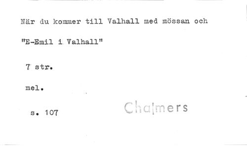 //// När du kommer till Valhall med mössan och "E-Emil i. Valhall" //// T str. mel. //// s. 107 ers ////
