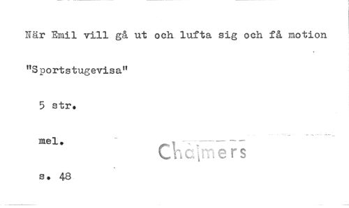 //// När Emil vill gå ut och lufta sig och få motion "S portstugevisa" //// 5 str. //// mei. Clkcpers //// s. 48 ////
