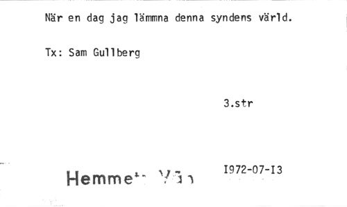 //// När en dag jag lämmna denna syndens värld. Tx : Sam Gullberg //// 3.str //// Hemme" 1972-07-13 ////