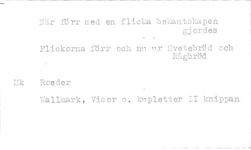 //// wr förr med. en flicka bekantskapen //// gjordes //// Flickorna förr och nr rr lvetebröd och //// Rågbröd //// rik Roeder //// Wallrn.ark, Vis or o. knipletter II knippan ////