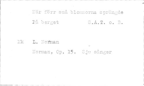 //// När förr små blommorna sprängde På berget S.A.T. o. B. //// Lik I. Notman //// Norman, Op. 15. Sju? sånger ////