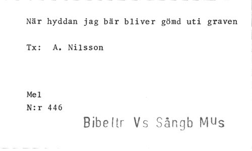 //// När hyddan jag bär bliver gömd uti graven Tx: A. Nilsson //// Mel //// N:r 446 //// Bibettr Vs Sångb Mus ////