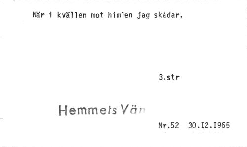 //// När i kvällen mot himlen jag skådar. //// 3.str //// Hemmets Wfr //// Nr.52 30.12.1965 ////