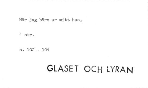 //// När jag bärs ur mitt hus, 4 str. //// s. 102 - 104 //// GLASE T OCH LYRAN ////