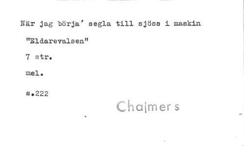 //// När jag börja' segla till sjöss i maskin //// "Eldarevalsen" 7 str. //// s,222 //// Chaimer s ////