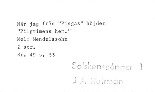 //// När jag från "Pisgas" höjder "Pilgrimens hem." //// Mel: Mendelssohn //// 2 str. //// Nr. 49 s. 53 //// e //// • //// f //// drian ////
