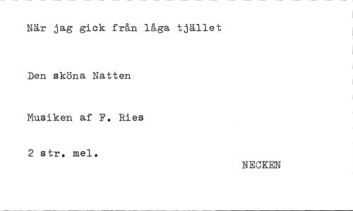 //// När jag gick från låga tjället //// Den sköna Natten //// Musiken af P. Ries 2 str. msi. //// NECKEN ////