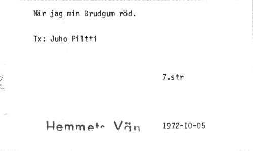 //// När jag min Brudgum röd. Tx: Juho Piltti //// 7.str //// 1-lemrn el.. Van 1972-10-05 ////